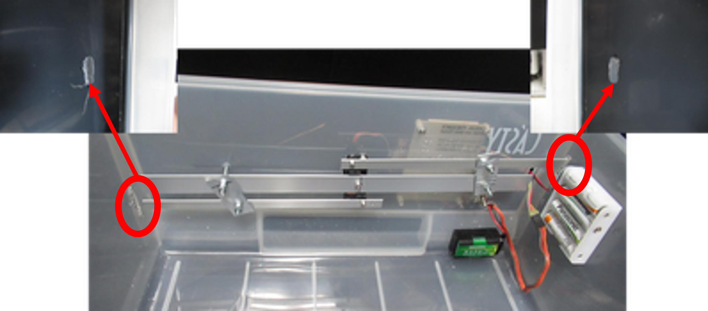 そのため,100円ショップで売られている引き出しを外付けして,その中に電池と,