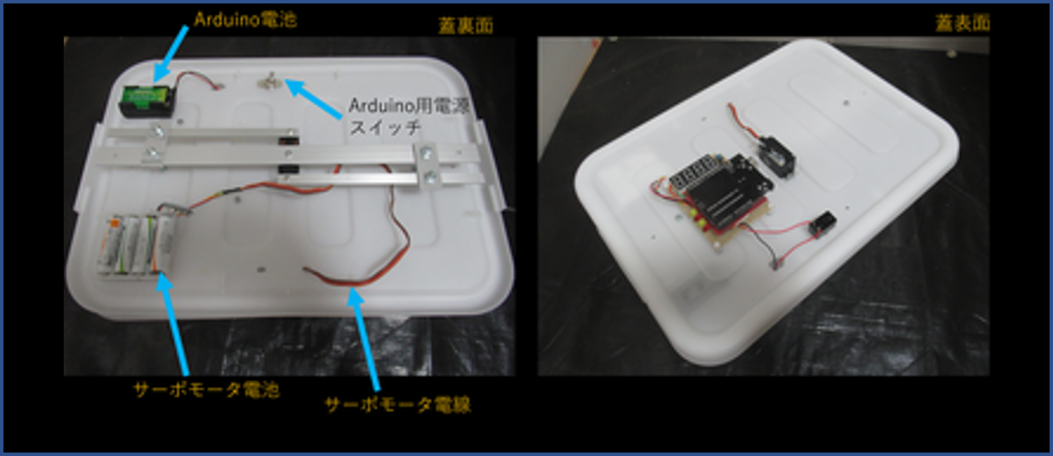 上蓋版は近所の100円ショップで,上蓋ロック用の容器を改装したものになります.