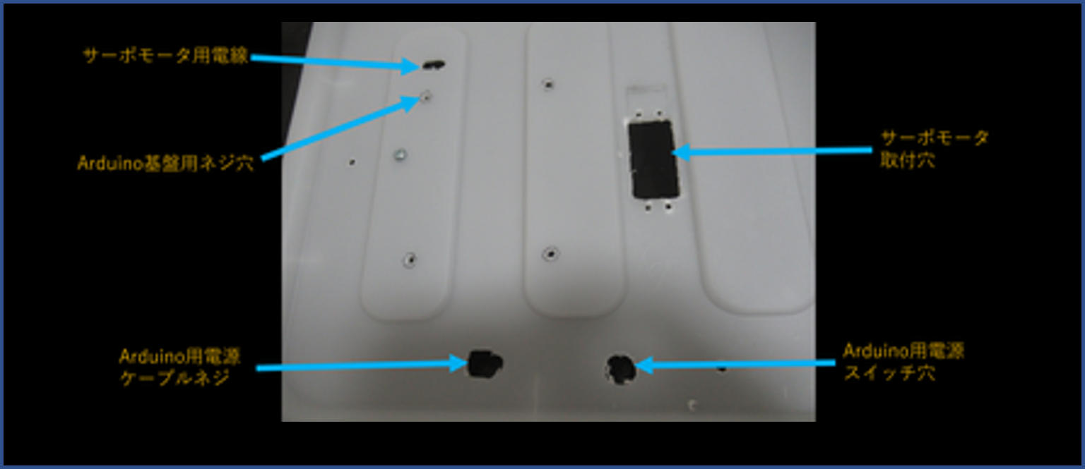 上蓋には,Arduino基盤取付穴