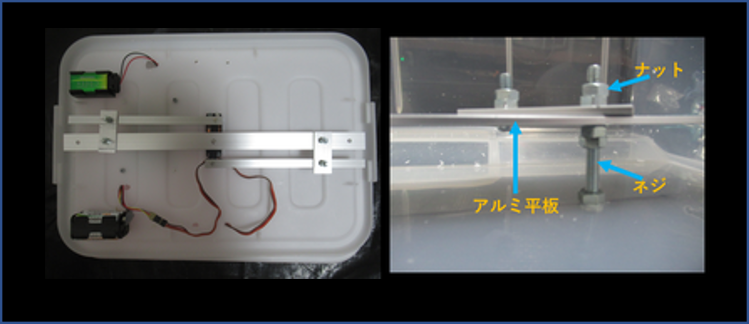 2.5号機は,購入した引き出しに段差がついていたので,位置調整用のアルミパイプも使っています.