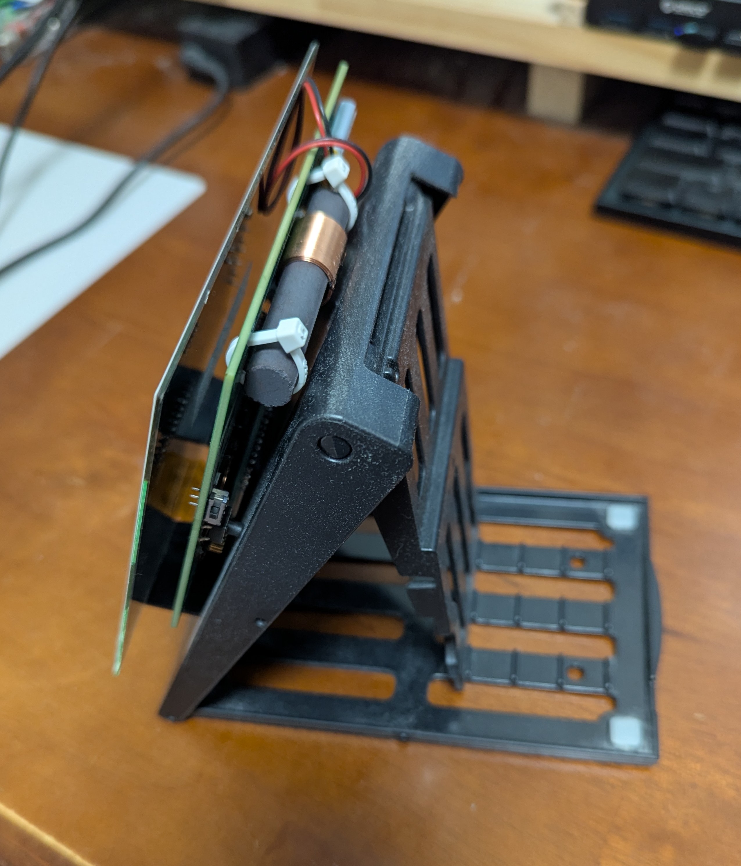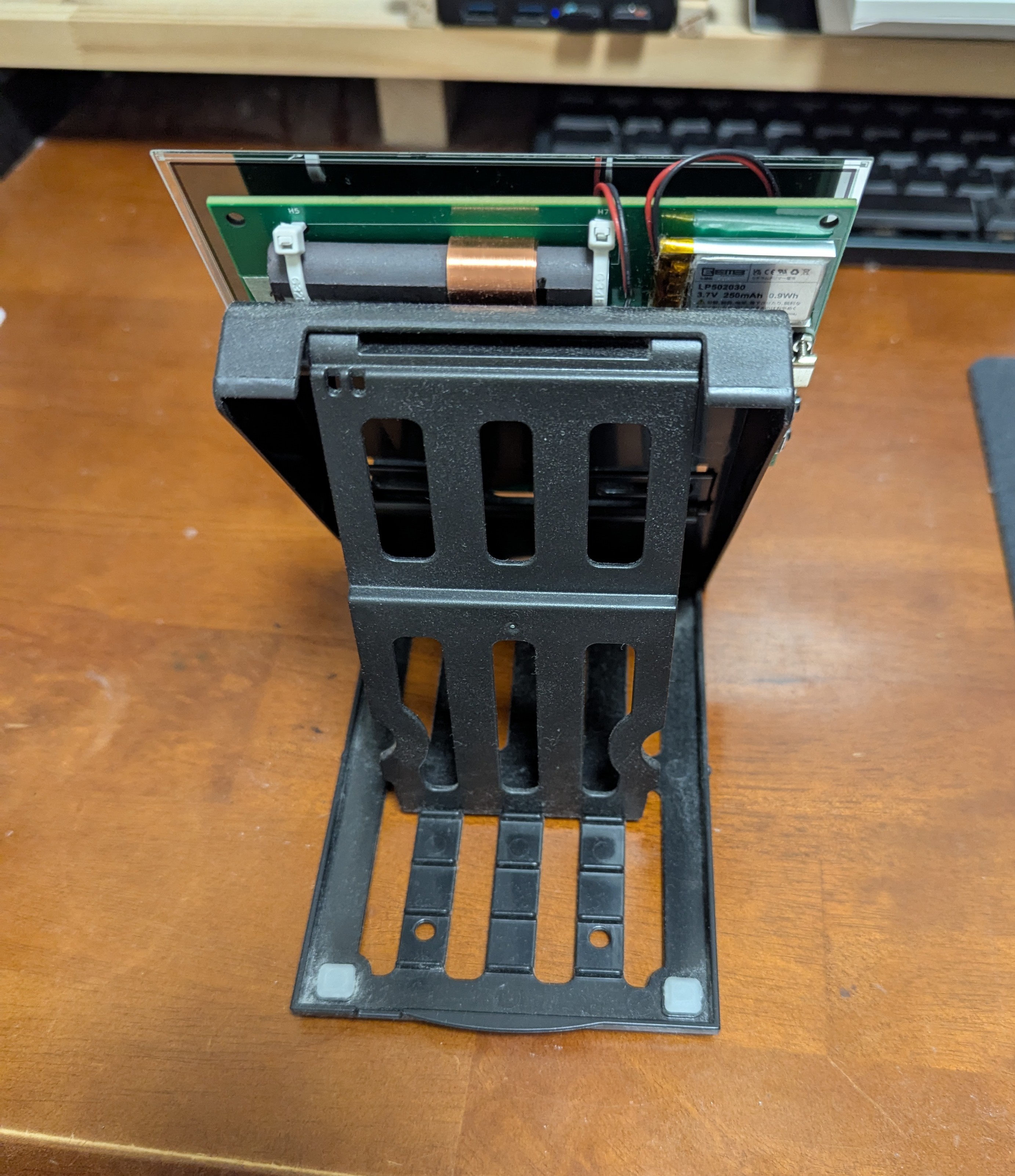 100均で購入したスマホスタントに載せるとちょうどよく、基板も背面にすっぽり隠れました。
