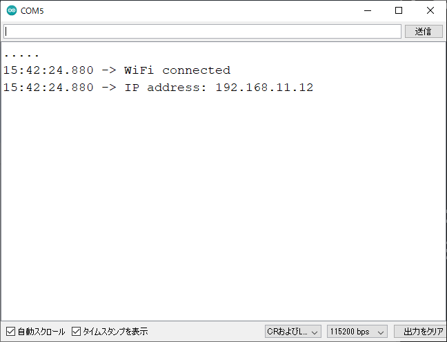そうするとしっかり接続できたようです.(シリアルモニタで確認)