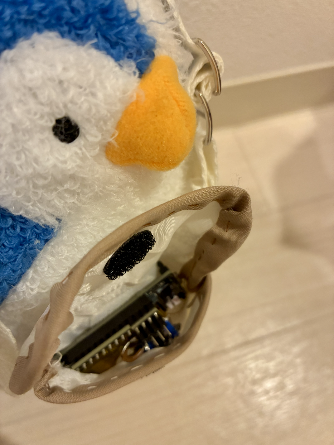 肩紐の長さを調整可能にし、様々なサイズのぬいぐるみに対応。お気に入りの子をIoT化完了!