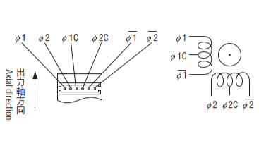 Φ1C や Φ2C はセンタータップと呼ばれる端子です。この端子はバイポーラ型のモーターにはない、ユニポーラ型に独特の端子です。バイポーラ型とユニポーラ型のコイルの巻き方は ステッピングモータの駆動:バイポーラ結線とユニポーラ結線 | TechWeb motor が詳しいです。