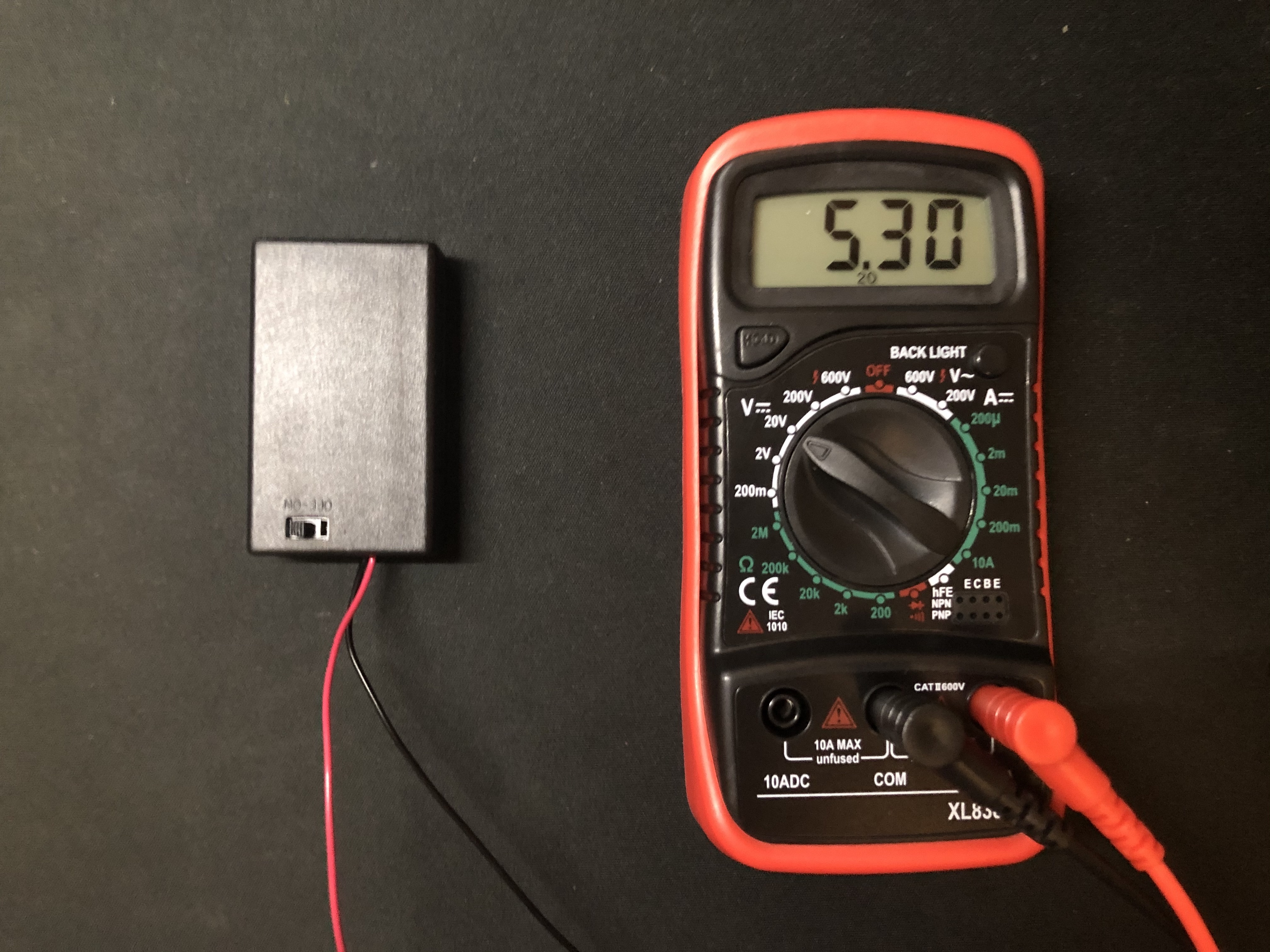 マルチメーターで電圧を見つつ、かつ小さい電池ケースを探った所単4電池3本が丁度良さそうという結論に。