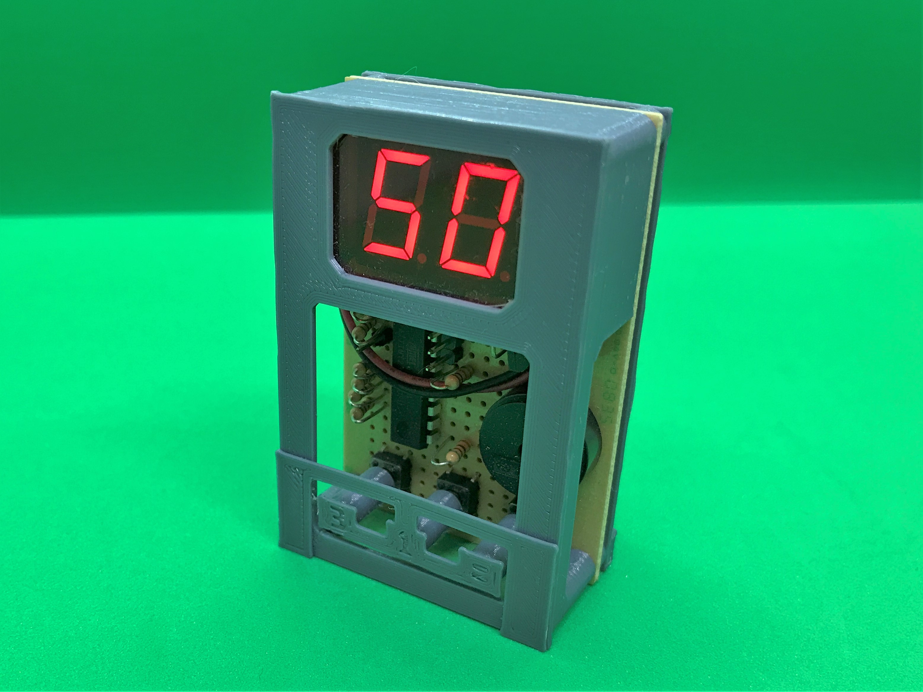 放置している手持ち部品の消化をテーマに、ありあわせの部品でキッチンタイマーを作りました。作りがテキトーなわりには常用しています。