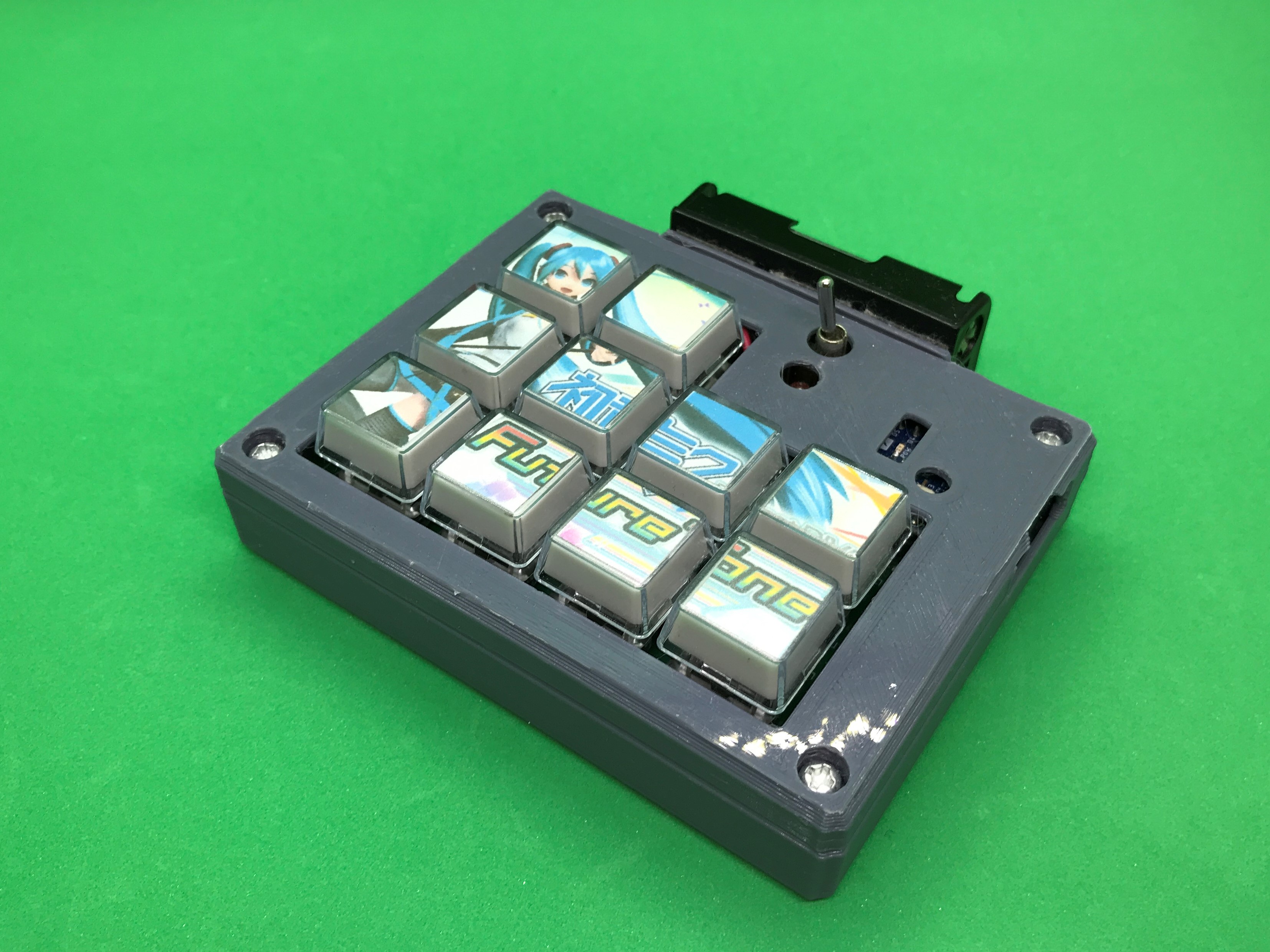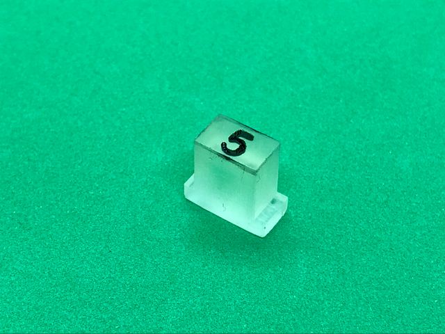 ボタンのパーツは、光造形3Dプリンターで文字の掘り込みをした形状で印刷したのち、手作業で掘り込み部分に黒い塗料を流し込んでいます。見栄えはアリなのですが面倒なので、ここぞという時だけ使う感じかと思います。