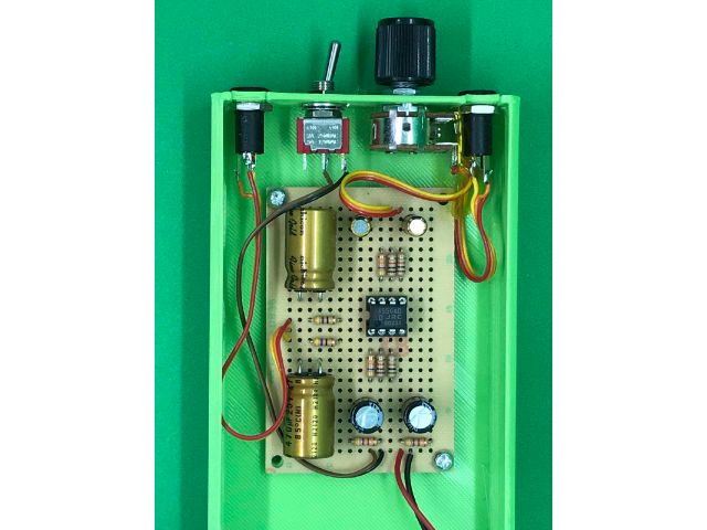 オペアンプの差し替えは正直よくわかりませんが、増幅率5倍の場合はNJM4556ADD、増幅率10倍の場合はNJM4580DDがなんとなく好み。