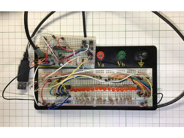 ブレッドボード上での試作です。USB通信機能のないAVRでUSBデバイスを実現するV-USBというライブラリを使ってパソコンと通信してみるための試作品でした。