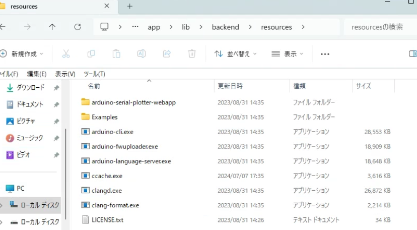 arduino-cli.exeなどが保存されている\resources\app\lib\backend\resources内にccache.exeをコピーしてください。