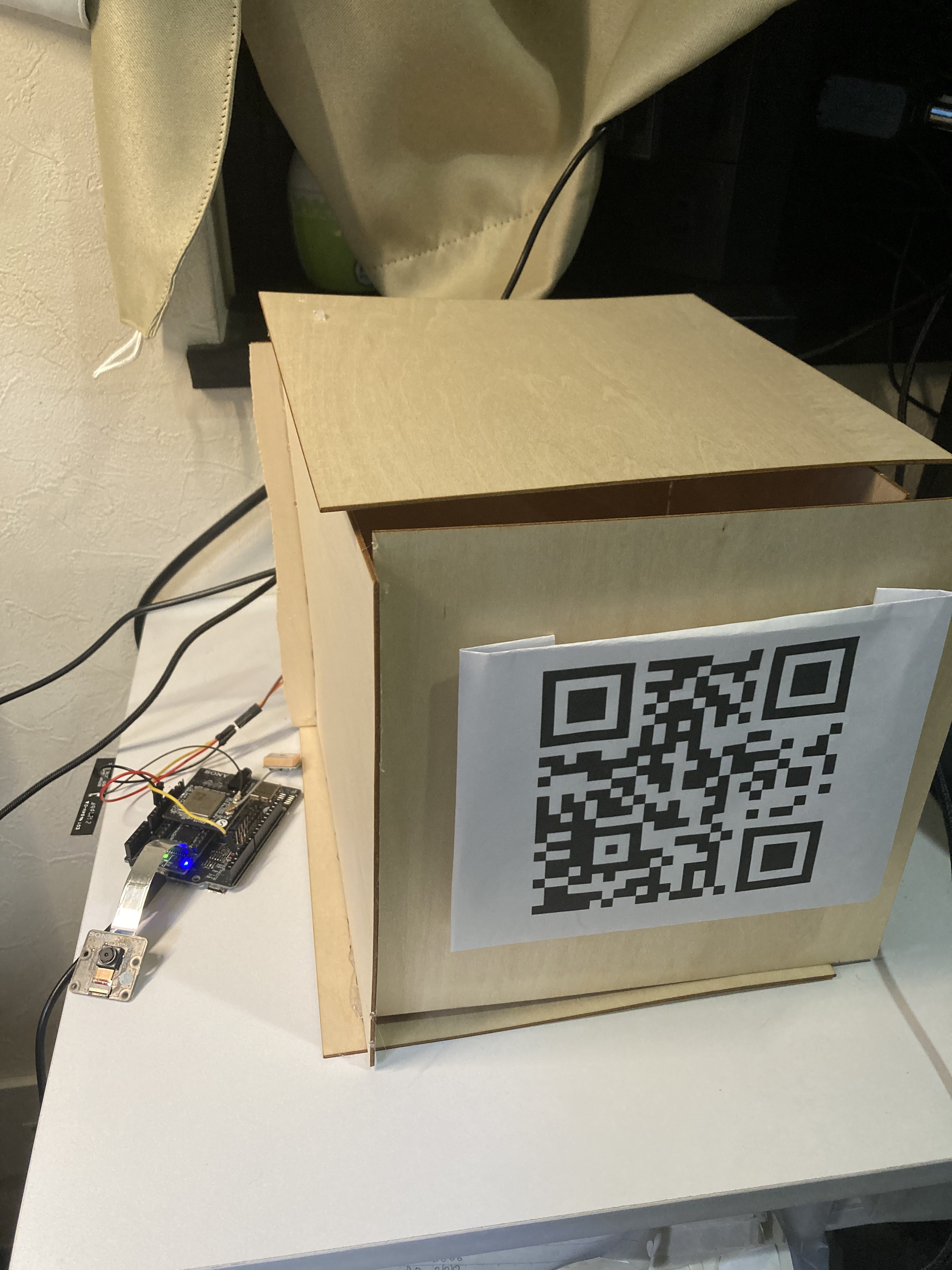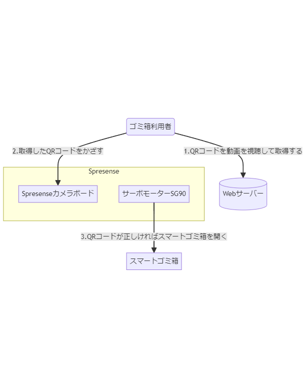 - QRコードがSpresenseが発行したQRコードと一致すればスマートゴミ箱が開く
