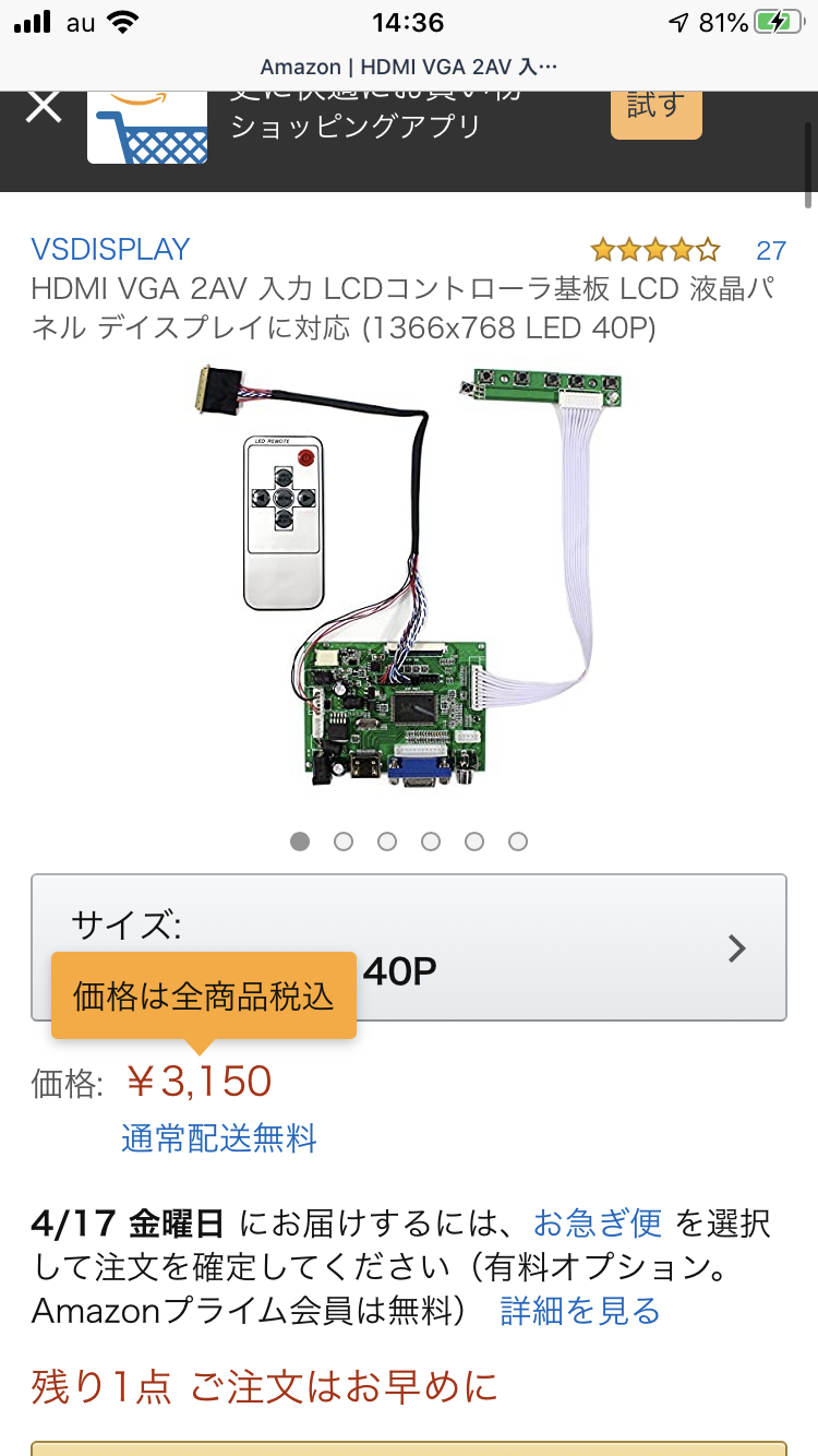 これに適した基盤を購入します。AmazonかAliExpressで「lCD基盤」と検索すると下の画像のように出てくるので自分のモニターにあったものを選びます。