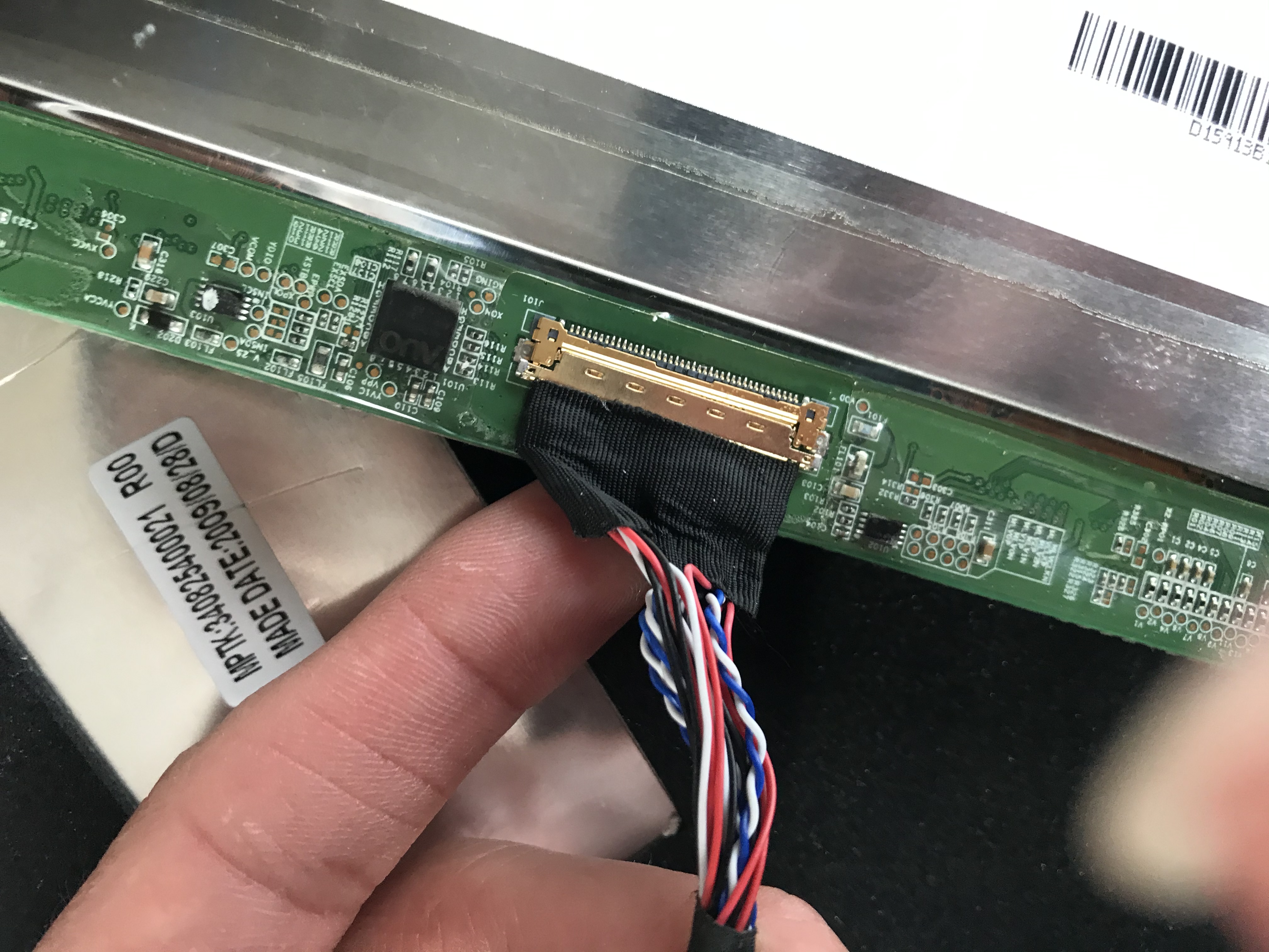 基盤が手に入ったら、早速取り付けます。もともとマザーボードと繋がっていたケーブルを外し、LCD基盤を付けます。