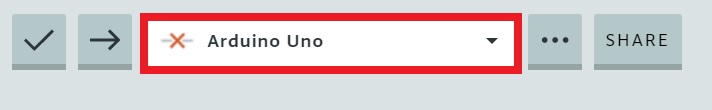 Arduino Web Editorを立ち上げたら、使用するArduinoボードを選択します。今回は「Arduino Uno」を使用するので、画面中央上部のセレクトボックスから「Arduino Uno」を選択してください。