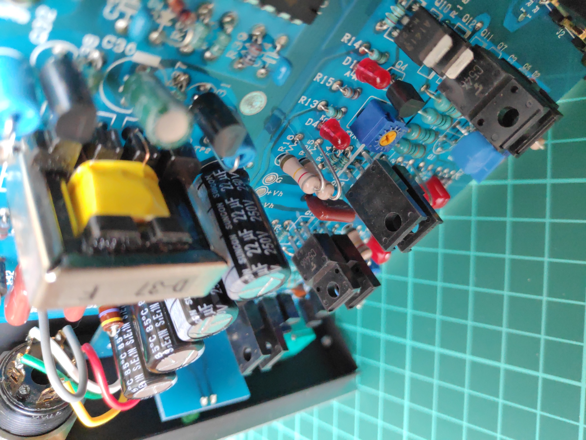 測ったところ、DCバイアスは約330V、アンプ用の両電源は約210V/-210Vでした。