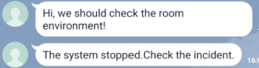 まだ寂しい感じですが、それぞれ以下のようなメッセージがプロアクティブに送られます。(上 : CO2 濃度が異常時、下 : プログラムの停止を確認した時)