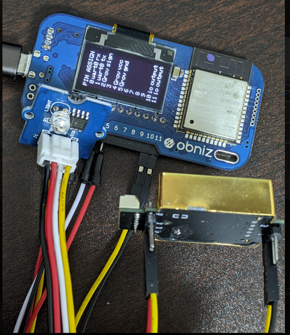 CO2 センサ mh_z19 はobniz で正式にサポートされたセンサではないので、uart で無理やり値取得することになります。幸い、たまたま見つけた個人ブログのやり方を真似したら取得できたので何とかなりましたがそこそこ詰まりました。(ラズパイ側でも試したりしてましたが、ちょこちょこ詰まりました)