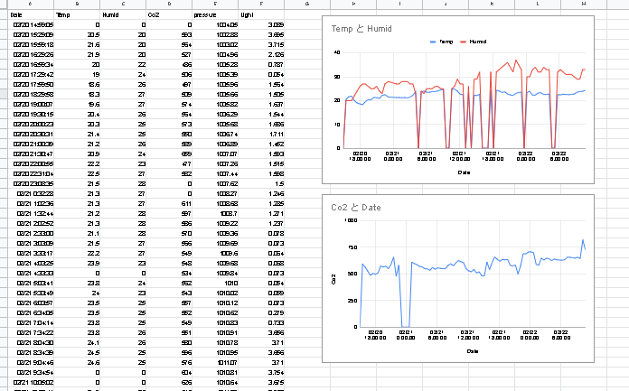 (CO2 濃度に関してはいい感じのサンプルで簡単に取得できたのがobniz だったので卓上で採っちゃいました。)