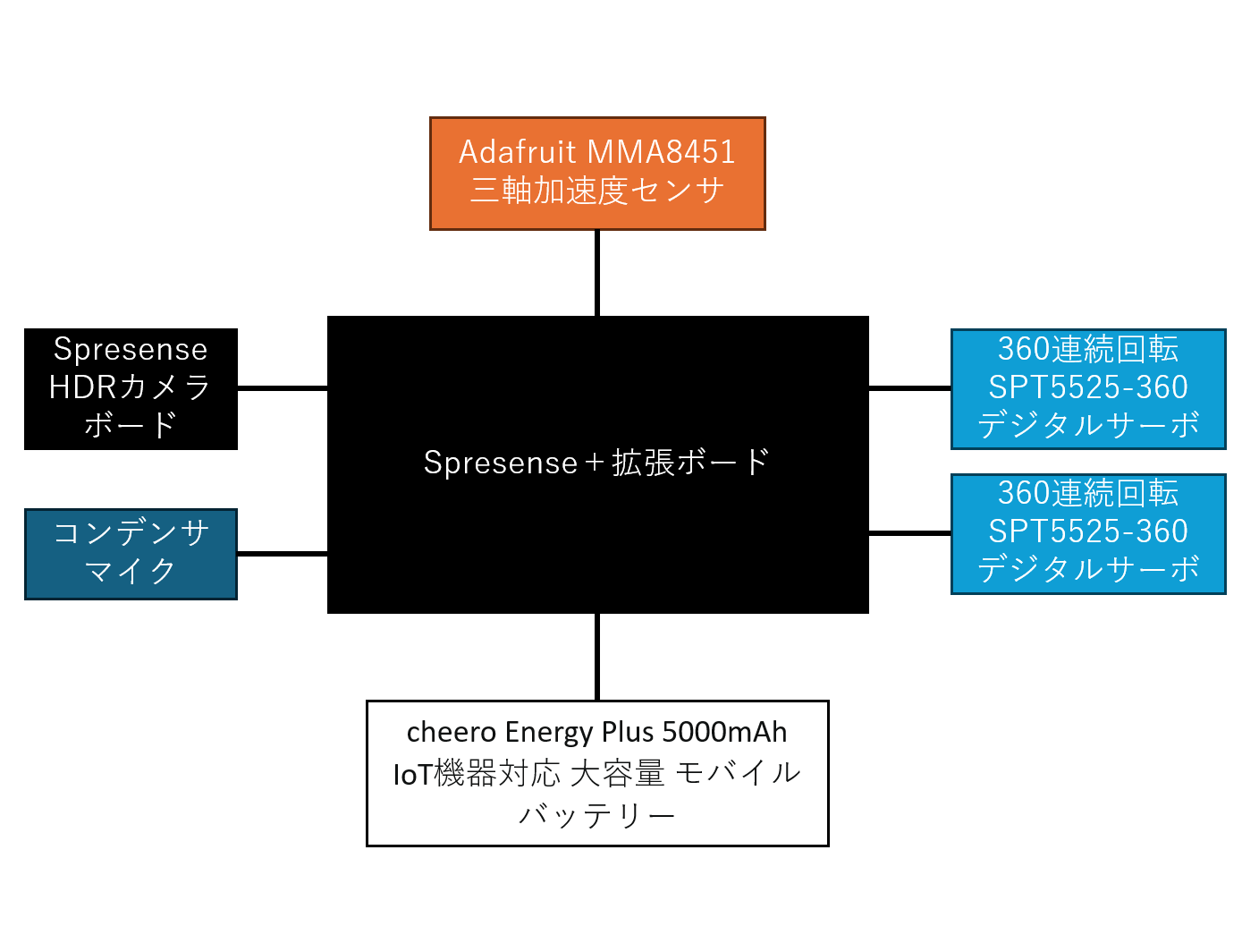 | SPRESENSEメインボード | 1 | https://www.switch-science.com/products/3900 (今回はコンテストで提供いただいたものを使用しています) |