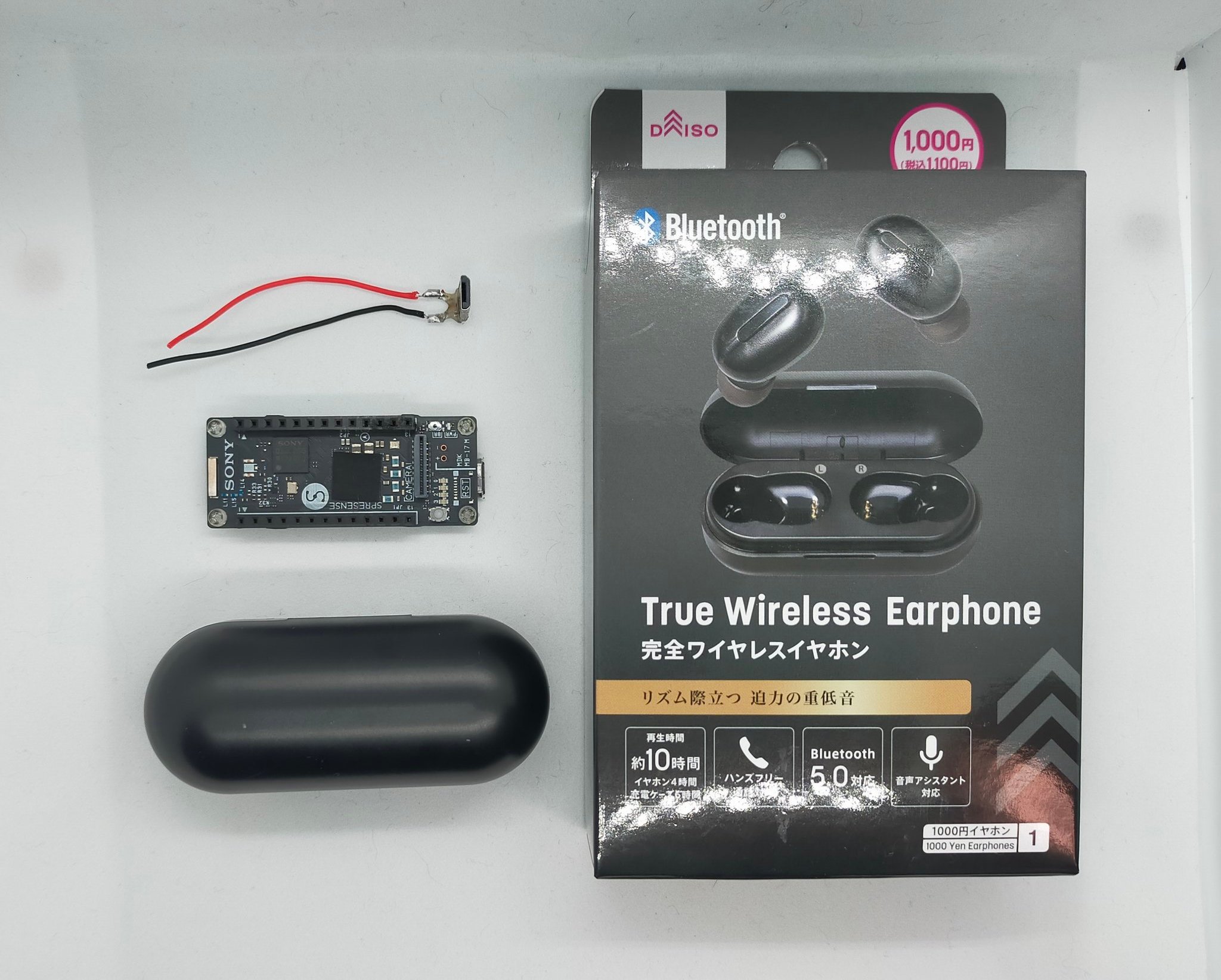 | 完全ワイヤレスイヤホン | ダイソー | 初代の充電ケースを電源に使用 |
