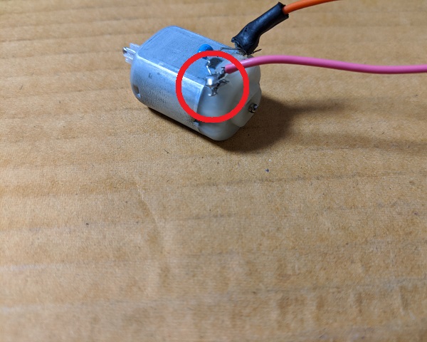 DCモーターの端子にワイヤーをハンダ付けしてください。