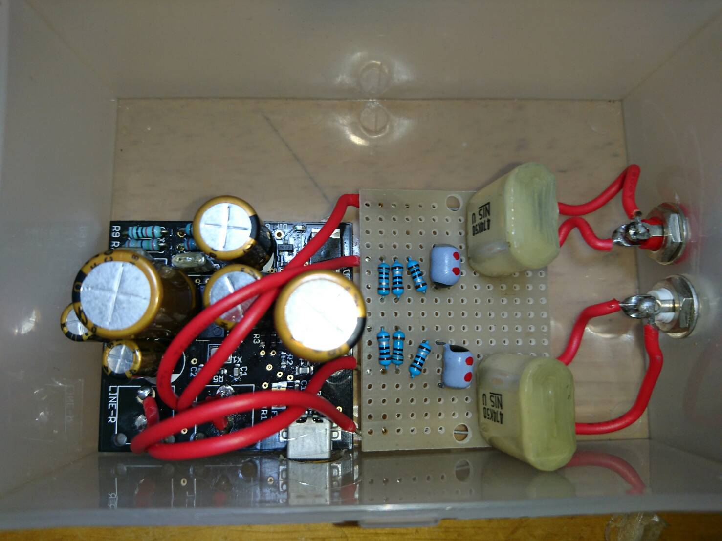 フィルタは基板上に実装するのですが、基板とKITのアナログ出力、またフィルタと出力を繋ぐケーブルはOFCを使用なくても良いのですが自己満足が欲しいので私はOFCにしました。