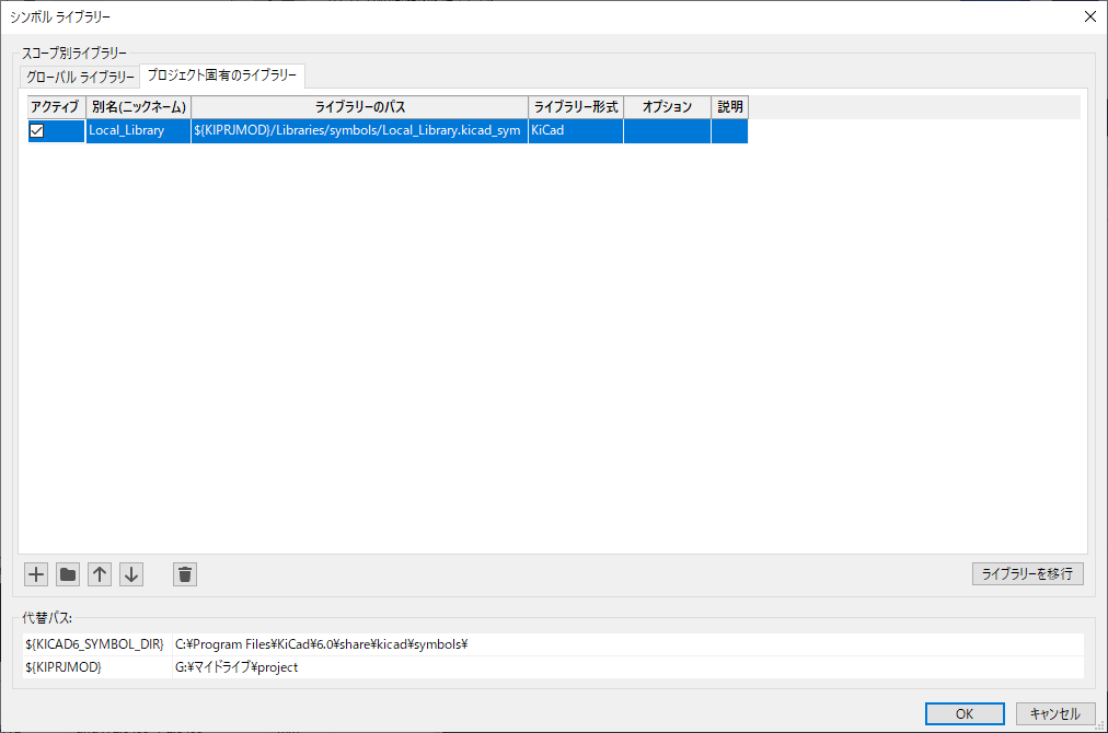 ${KIPRJMOD}/Libraries/symbols/Local_Library.kicad_symになってることを確認