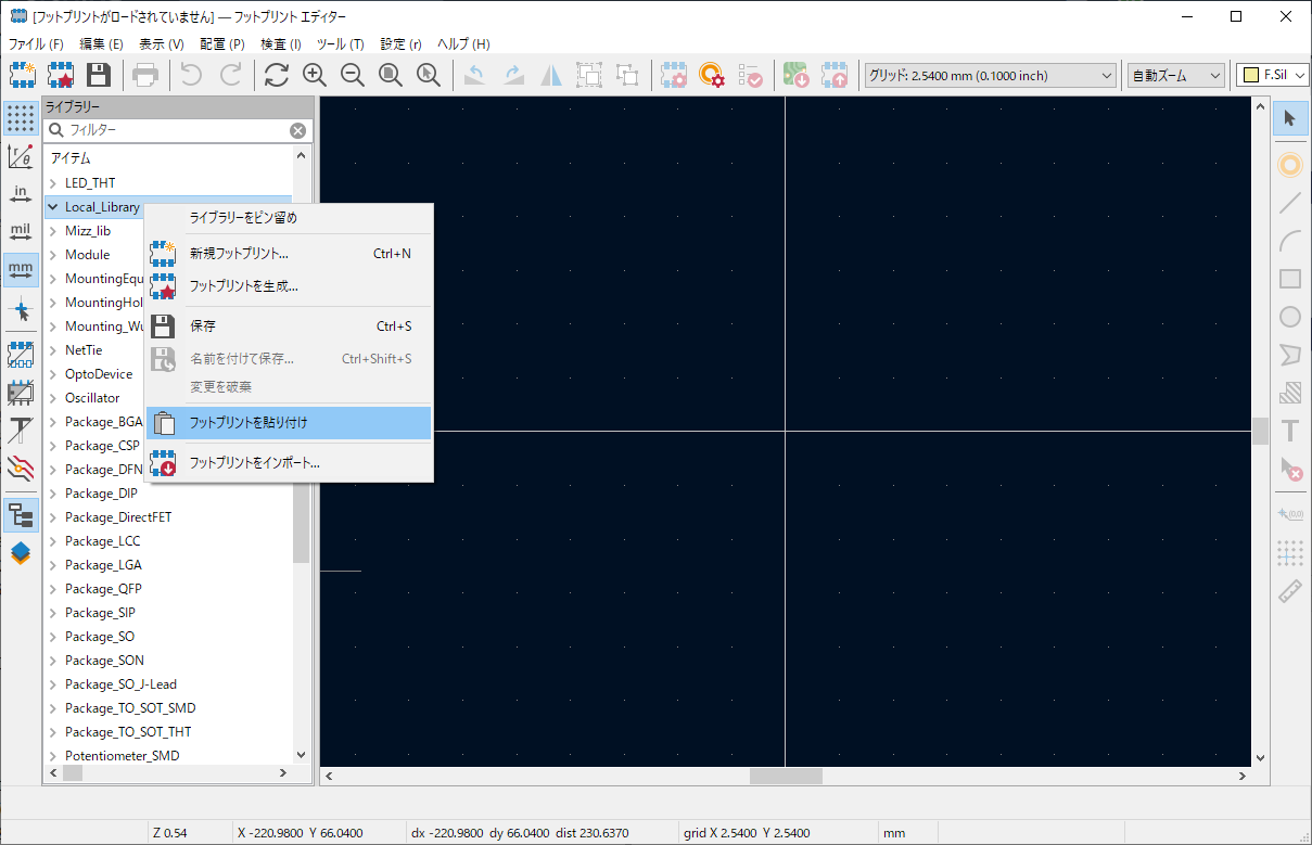フットプリントをローカルライブラリーに保存