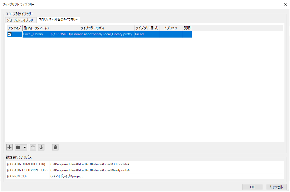 ${KIPRJMOD}/Libraries/footprints/Local_Library.prettyになってることを確認