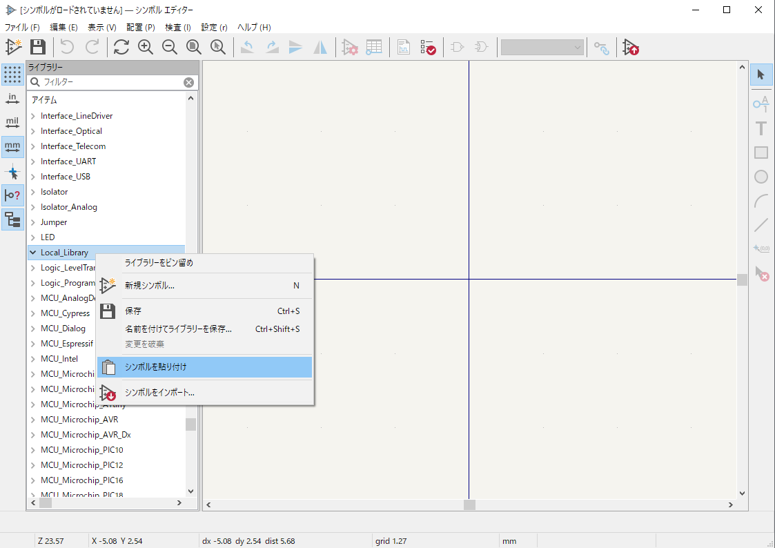 - ローカルライブラリに設計に使うすべてのシンボルなどをコピー