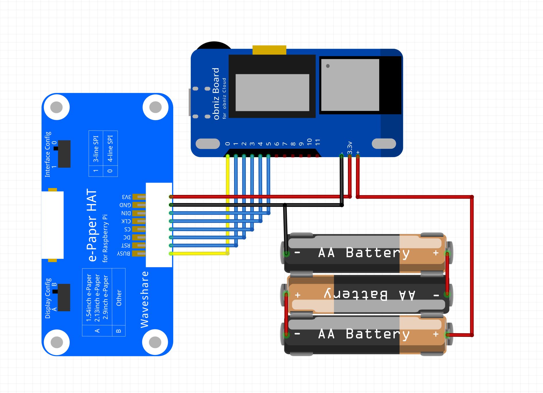 省電力なobniz board 1Y、省電力なディスプレイの組み合わせを活かすために、乾電池で長期動作を目指すことにしました。