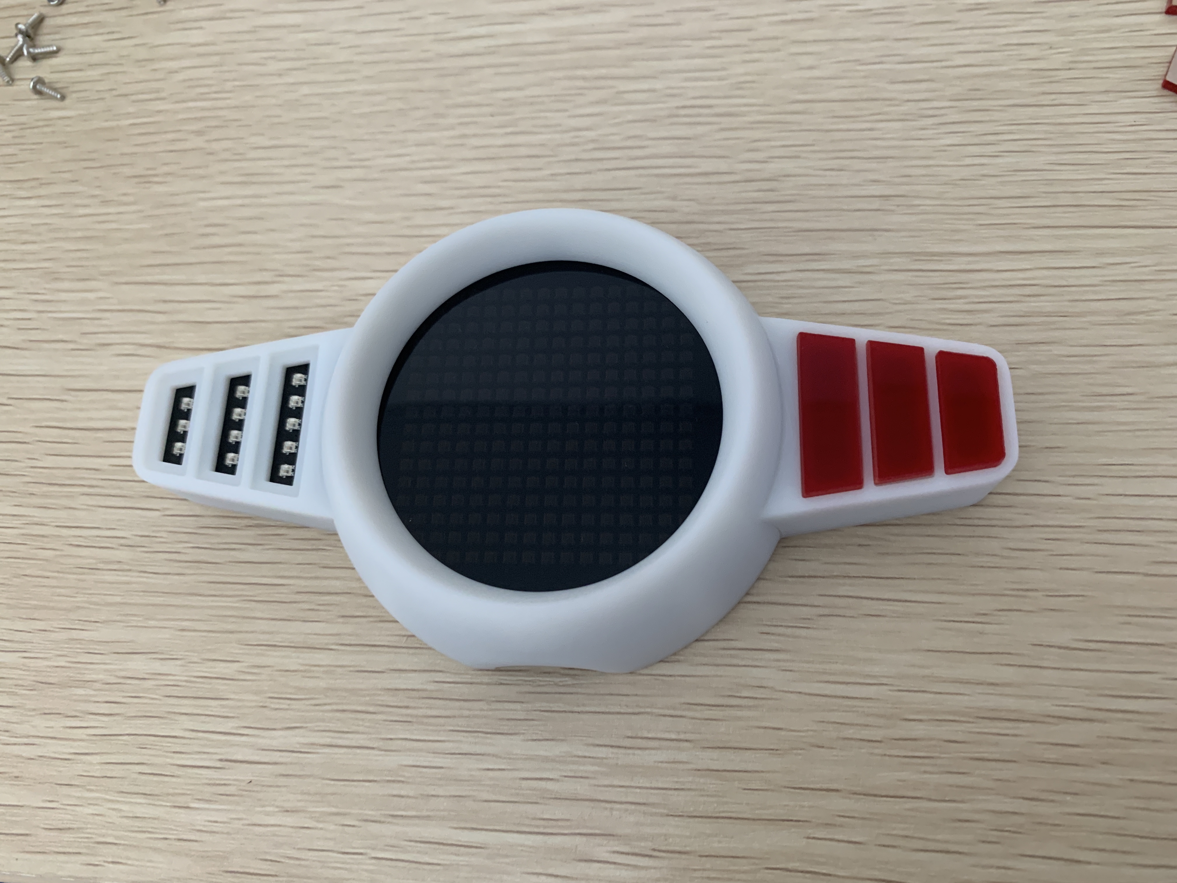 これで全ての部品が揃ったので、いよいよ組み立てです。モデリングデータをみてもわかるように基本的にネジ締めだけで組み立てができるようにしました。とはいえ左右のインジケータLEDだけアクリルと筐体を接着剤で固定しています。