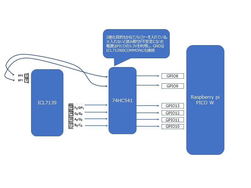 なんとも遠回りな方法なのですが、ICL7139にはシリアル出力などの便利な機能はないので、この方法しかなさそうです。