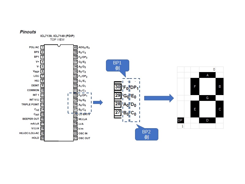 そもそものICL7139の液晶表示の仕組みを紐解いてみます。