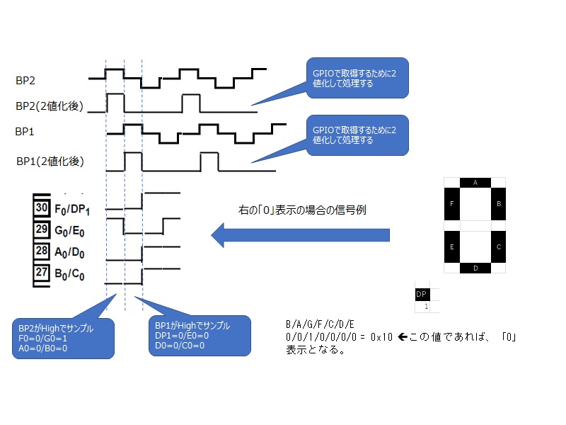 実際にセグメントが「.0」を表示している時の信号の状態を下図に示しました。