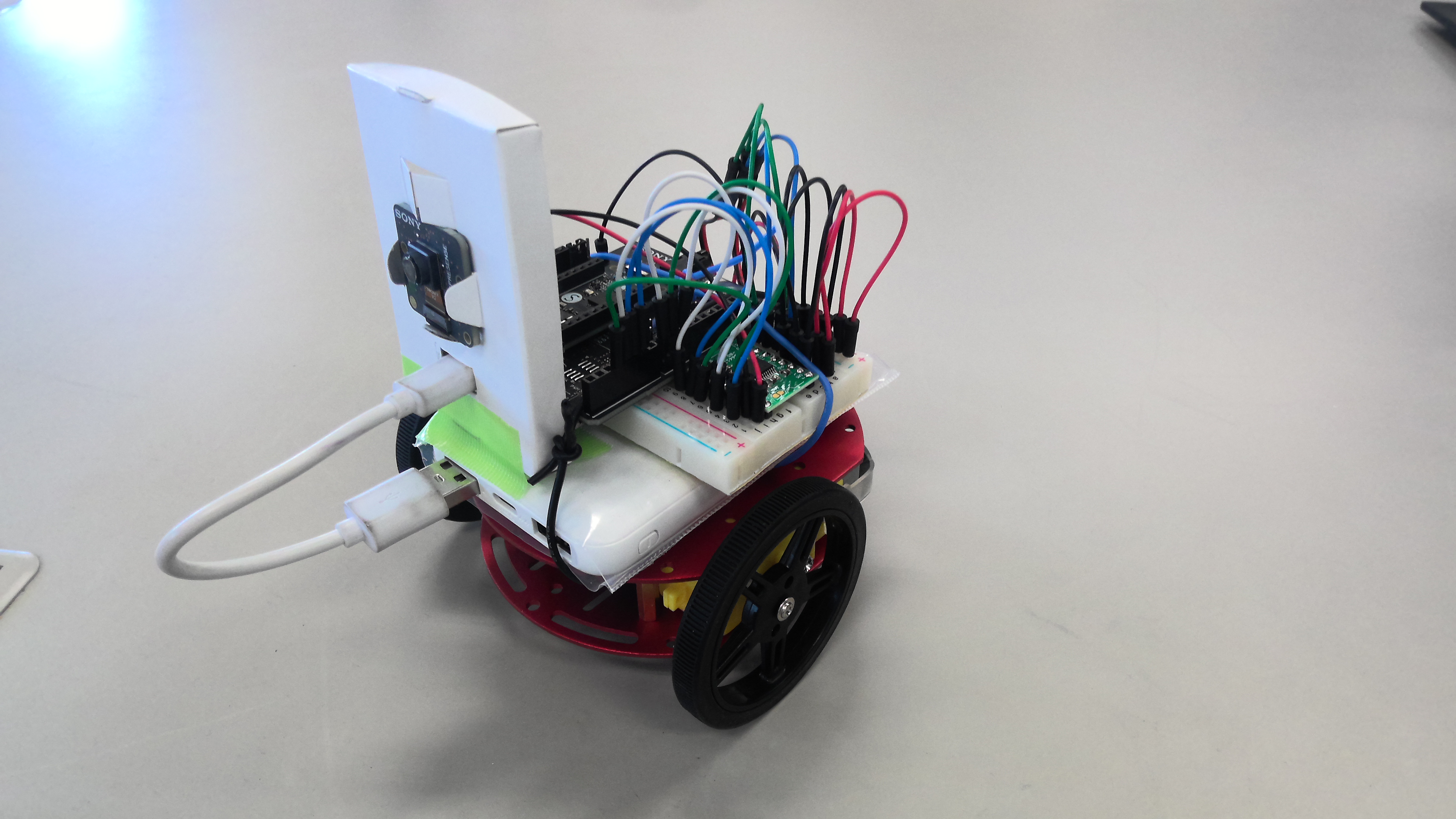 これにより何とか手の推論が成功、最後にこれらを秋月で見繕ったRCカーと合わせて、モータの出力に分岐させて、完成です。