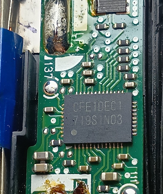 画像はBMSの基板の一部、制御ICの様だがマイコンか専用のICか型番からは判断出来ない。