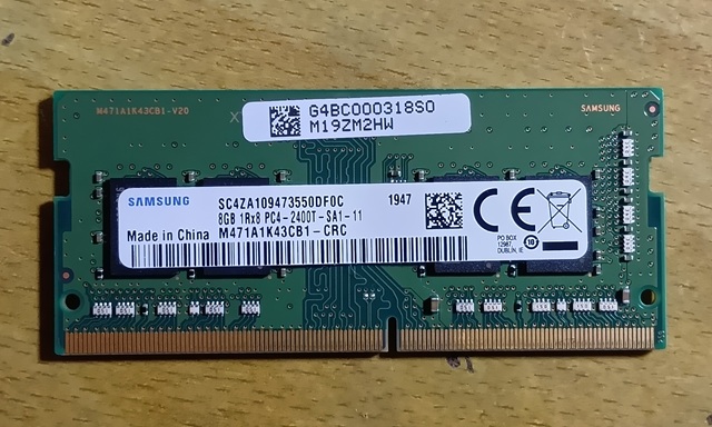 ところが、ジャンクPCが中々見つからないのでメモリ単体を調達して挿入、同規格の「DDR4 SDRAM PC4-19200」 認識しました