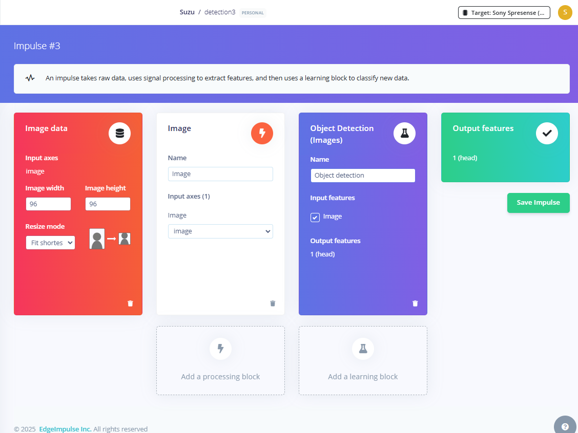 Edge Impulseは、エッジデバイスでの推論を実現するプラットフォームです。Edge ImpulseのWebサイト内で、データのアップロード、ラベル付け、トレーニング、学習したモデルのエクスポートができます。Spresenseにも公式に対応しています。
