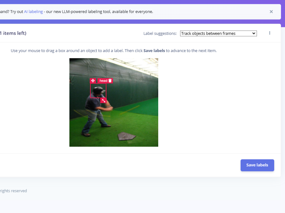 アップロードした画像に対して、どこにどのオブジェクトがあるかをラベル付けしていきます。