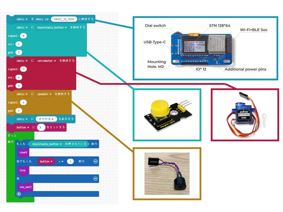 ・obnizはブロックプログラムでJAVAScript全く分かってない者でも電子工作やIOT機器作れてしまうのが素晴らしいと感じました。