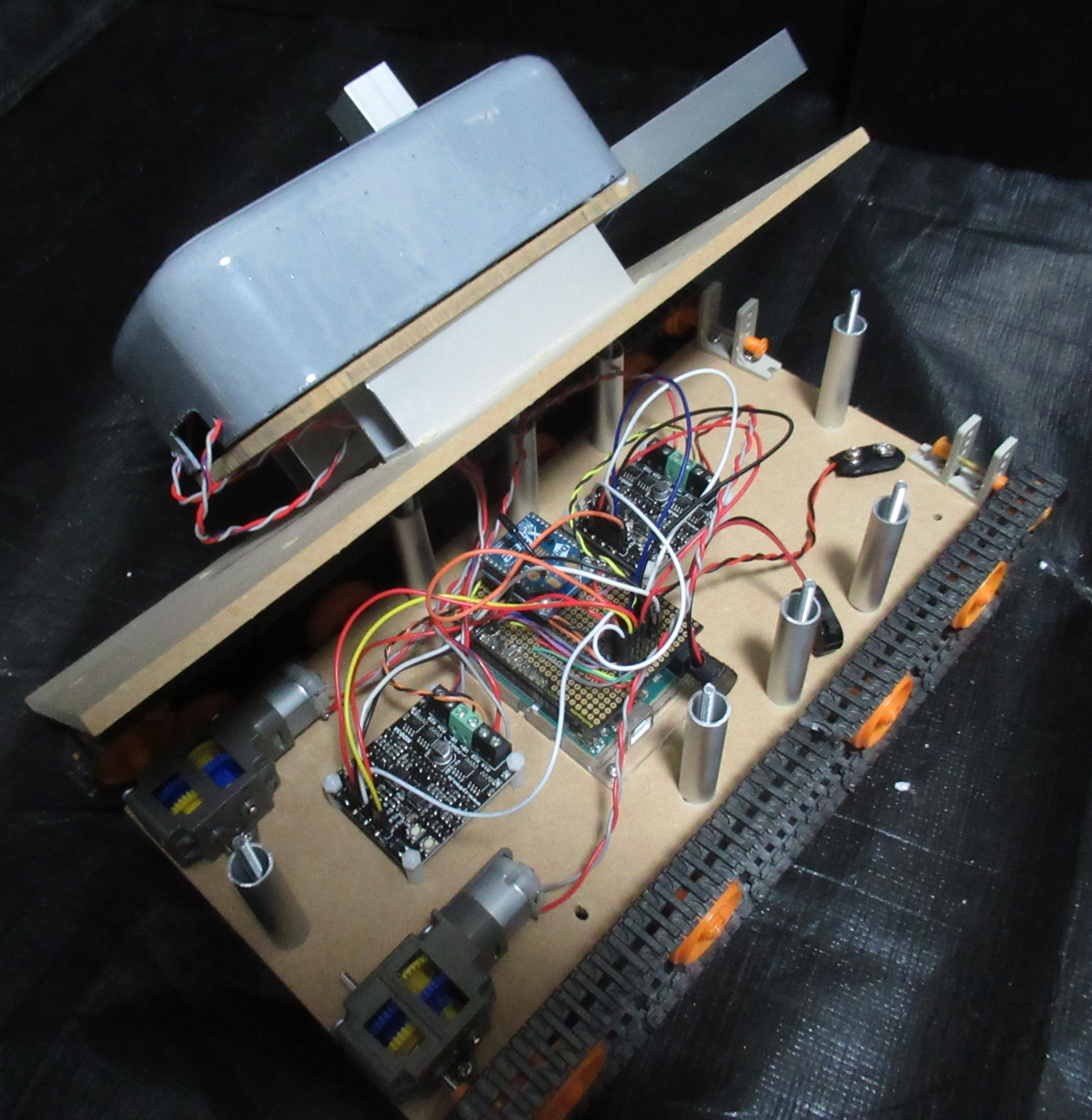 車体内は,タミヤギアボックスとArduino,モータドライバーで構成されています.
