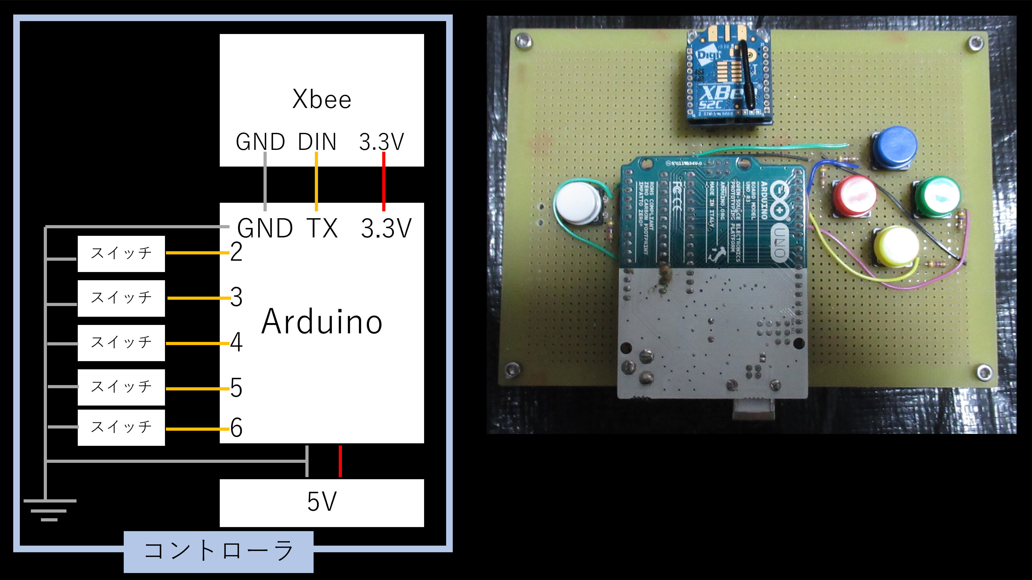 コントローラ側は,タクトスイッチでもOKですが,もう少し大きめのスイッチを用意すると