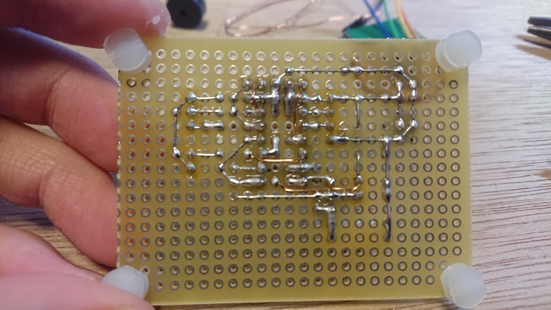 PICの下に部品を仕込むことにより、ぱっと見の部品点数が少なく見せるインチキをしている。完成品がこちら。