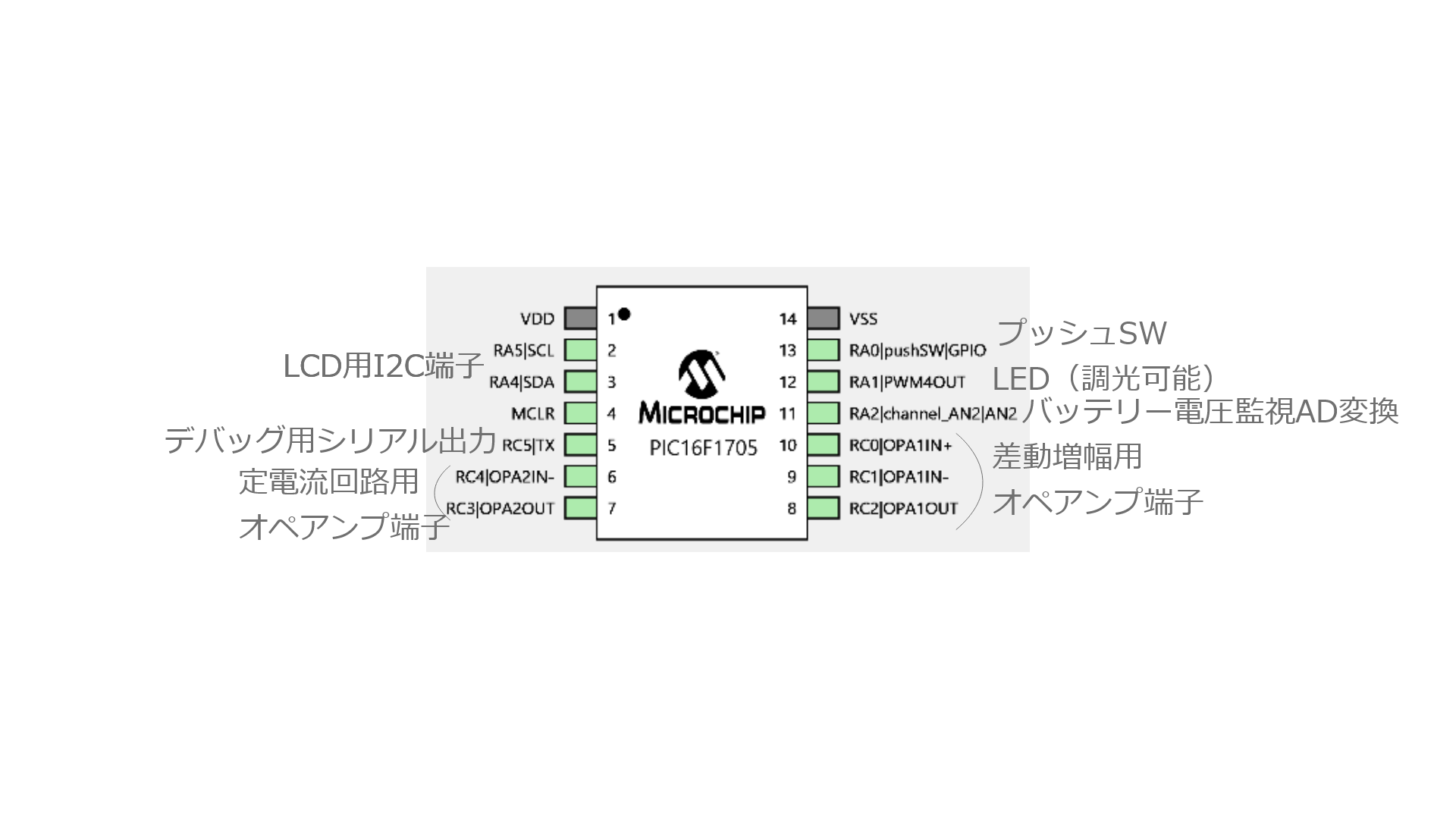 今回使うPIC16F1705は、現在展開されているPIC16F1シリーズの中でも、フルスイングオペアンプが2回路搭載されている珍しい石である。その他の内蔵モジュールと組み合わせることで、色々なおもちゃを作る時これひとつで完結させることができる。しかも安い!そして充電の対象となるのはこちらの電池。