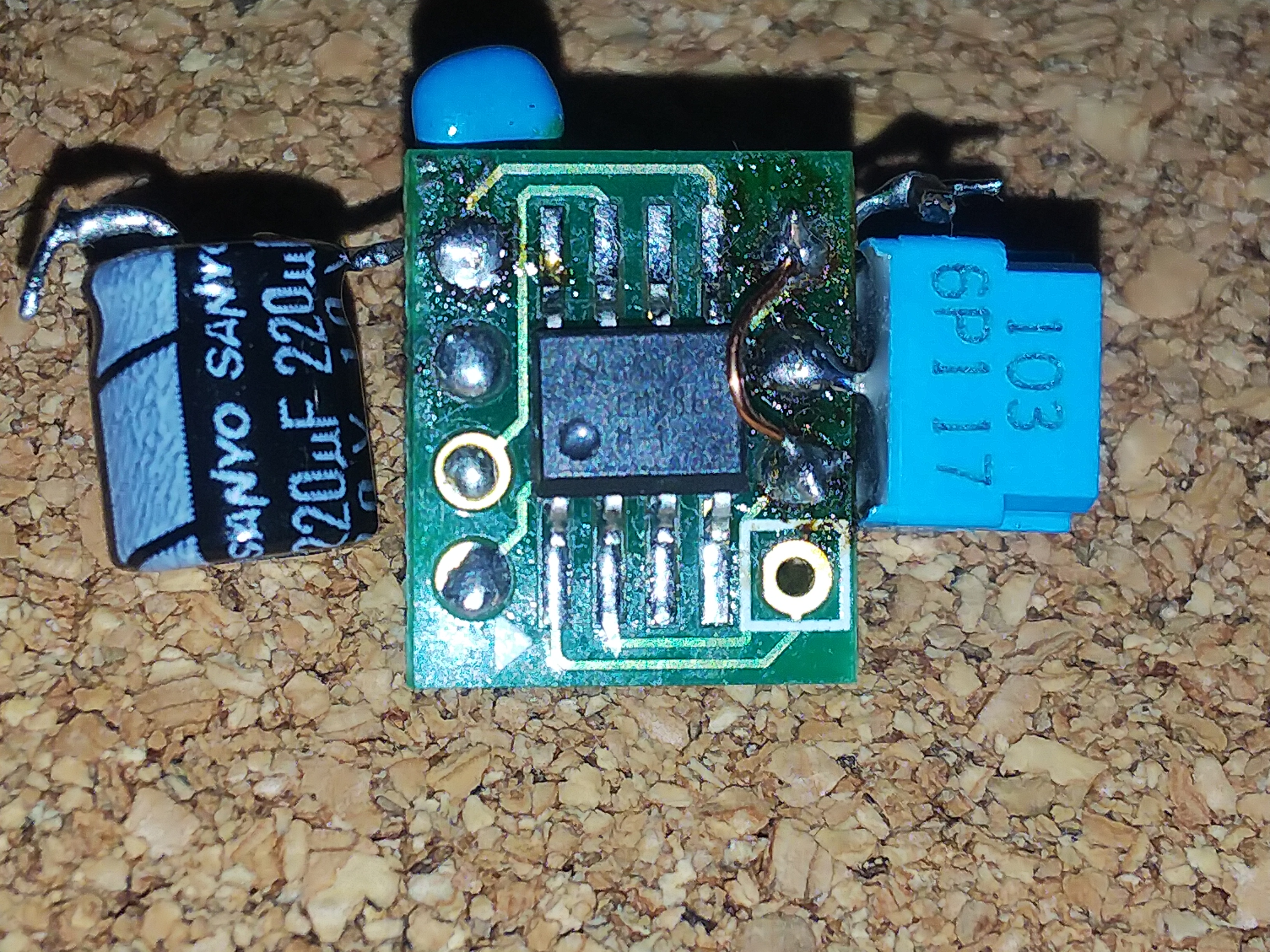 小さいところに押し込むために、短く細い電線を直接実装する形で外付け部品を最小限にする事を意識しました。