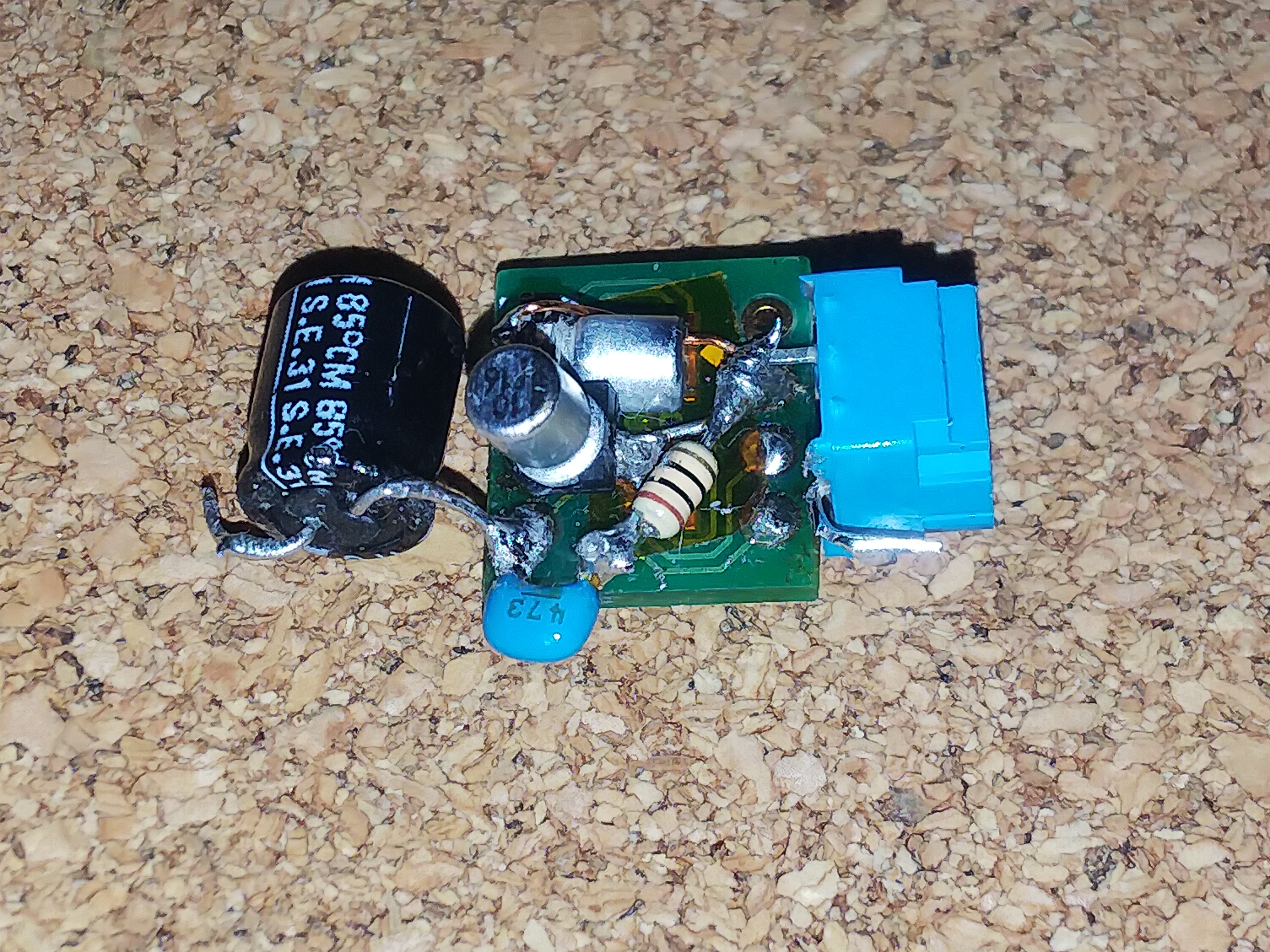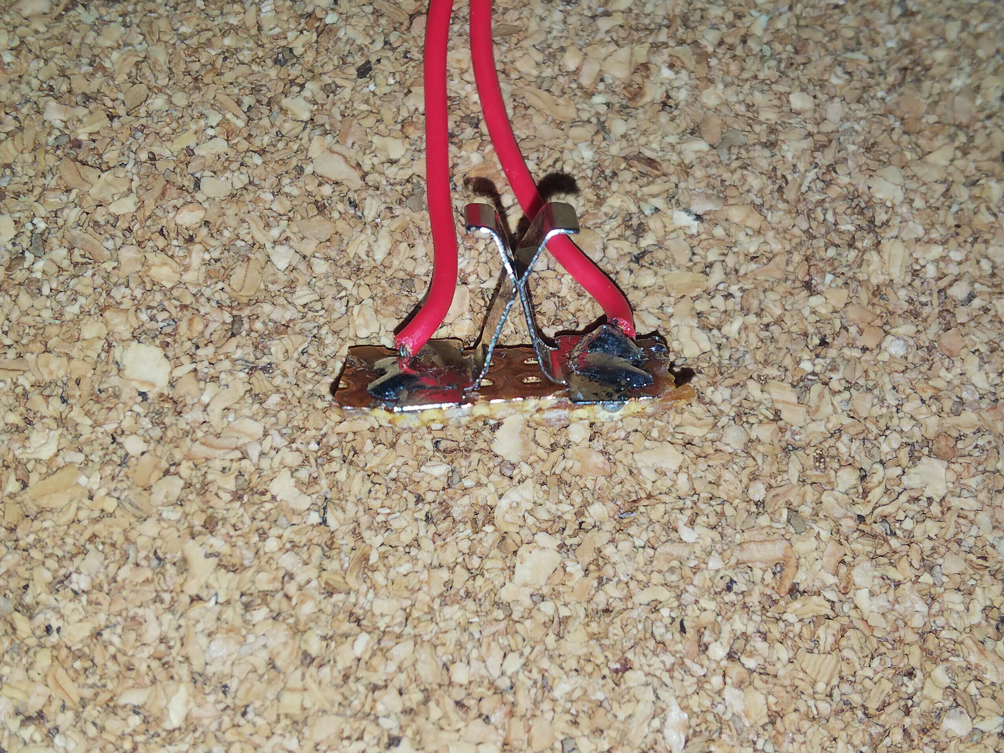 分解した、電池式のモバイルバッテリの残骸の接点部分を利用して
