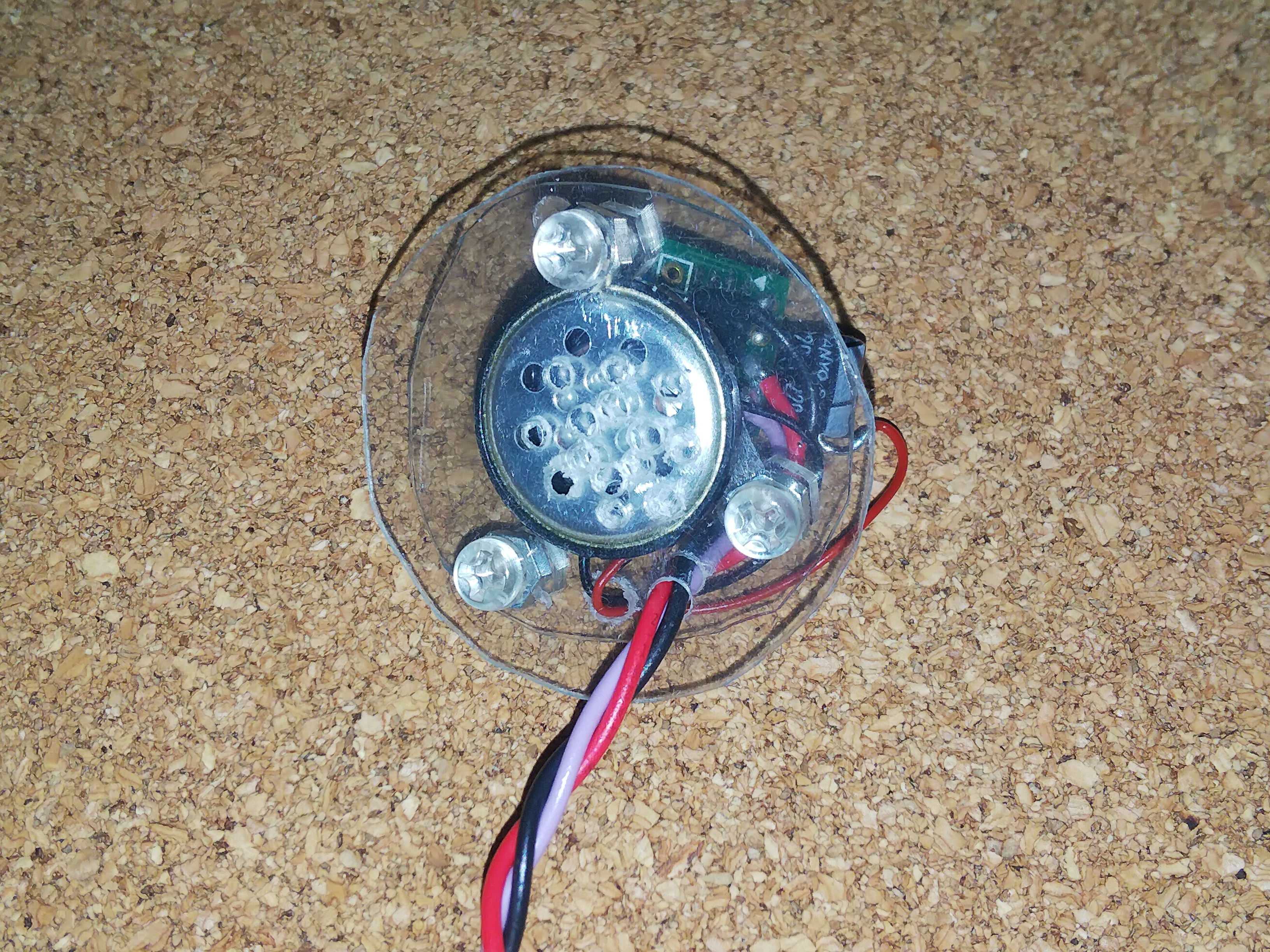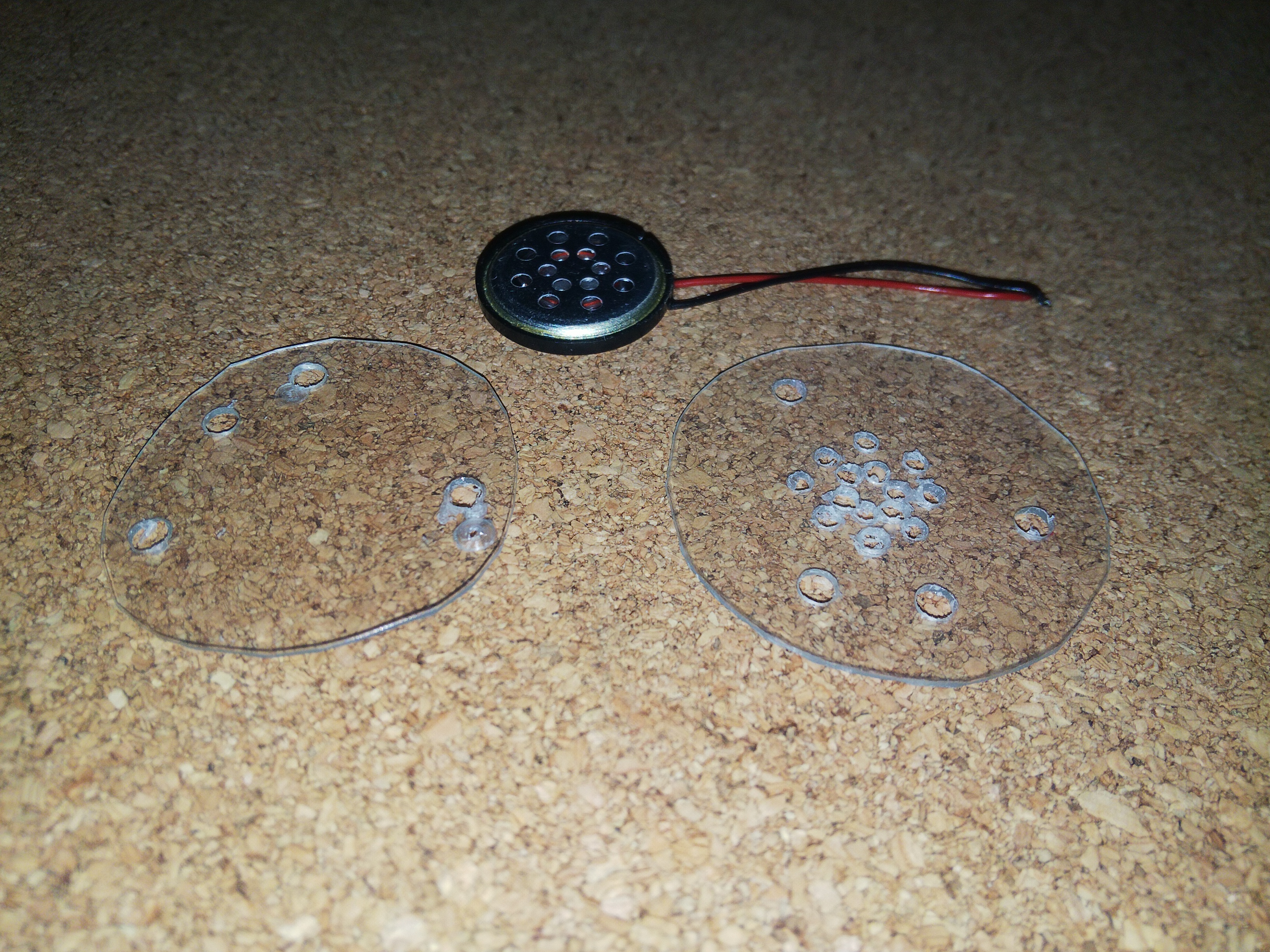 ホットボンドで固定しました。(スピーカーの穴に合わせて穴もあけたのですが、最終的に微妙にあいませんでしたorz)