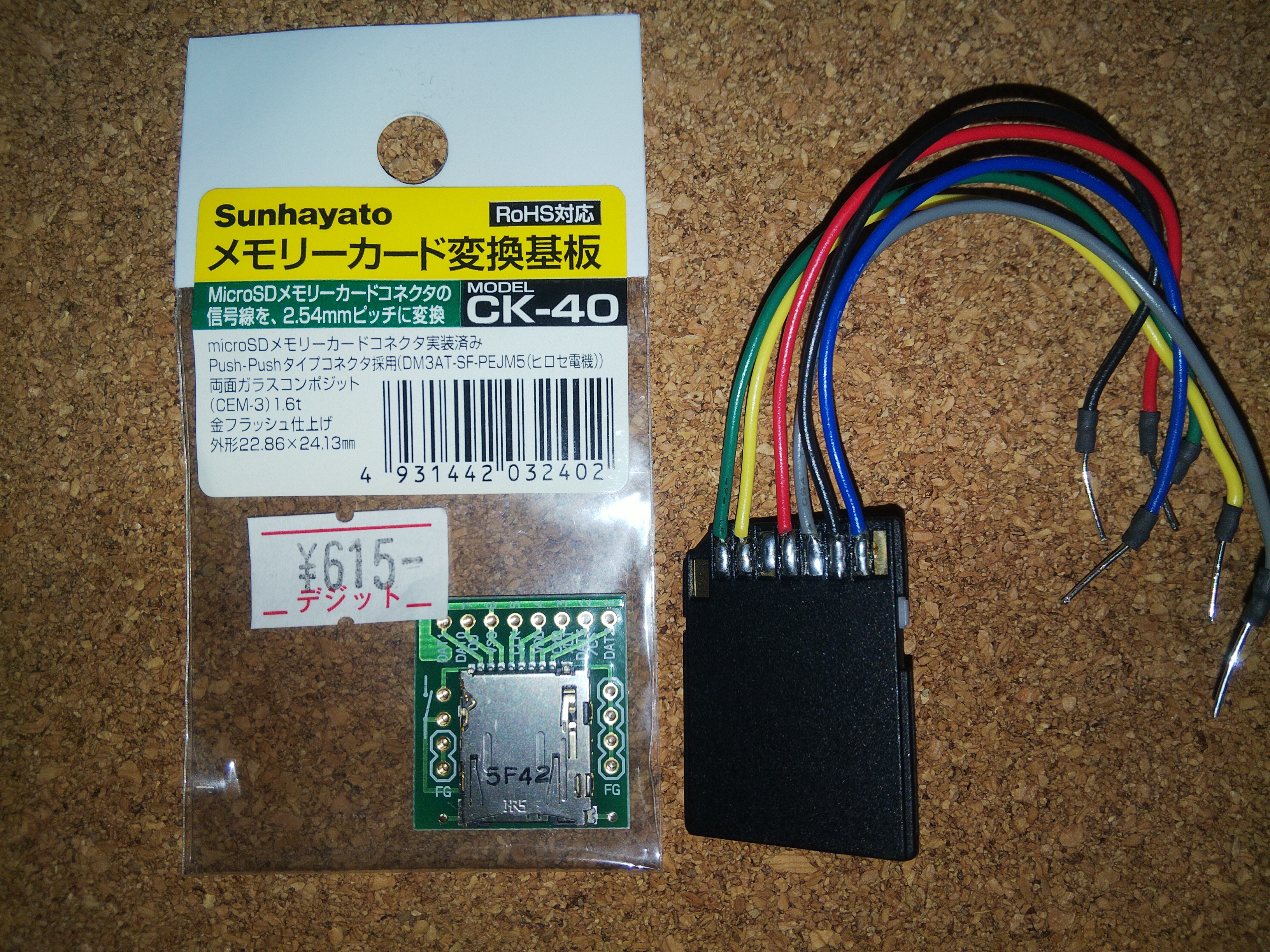 しかも変換基板は600 円以上(写真左側のもの)と SDカード本体よりも高かったりします。