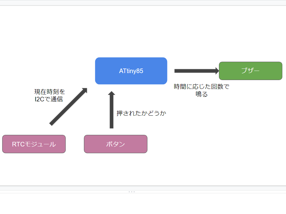 ボタンが押さえたらRTCで取得した時刻を参照して、それに応じた回数のブザーが鳴ります。